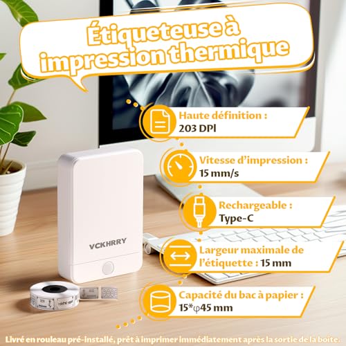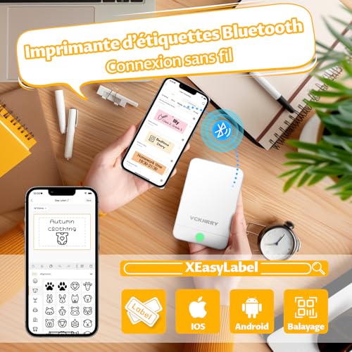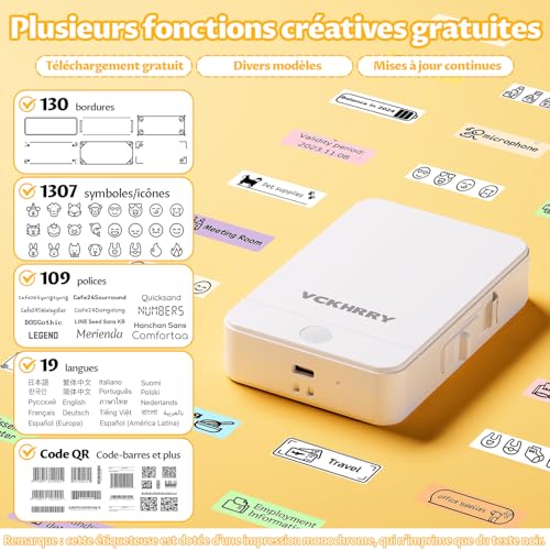 VCKHRRY Étiqueteuse Bluetooth Imprimante Thermique Etiquette Autocollante Imprimante d’étiquettes Compatible avec iOS et Android pour la Maison, Le Bureau, l’école, la Cuisine
