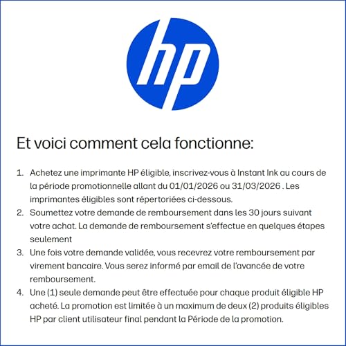 Profitez d’un remboursement en achetant cette imprimante et en vous abonnant à HP Instant Ink. Voir Conditions