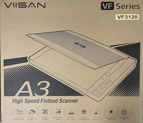 Scanner à plat Viisan VF3120 – Format A3 – – Résolution maximale : 1 200 x 1 200 DPI – Avec logiciel ViiScan pour Windows et Mac
