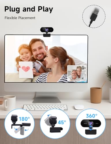 【Angle Réglable】La webcam streaming peut être tournée à 360° à gauche et à droite, à 45° vers le haut et vers le bas, et la base peut être ouverte à 180°, multi-angle ajustable pour vous aider à trouver un angle de prise de vue plus approprié. Angle super large de 80° pour capturer plus de séquences de personnes, idéal pour la vidéoconférence, la diffusion en direct, les cours en ligne et plus encore