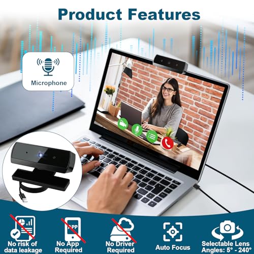 Large Compatibilité pour Toutes Applications: plateformes de streaming et de vidéoconférence populaires telles que Compatible avec Zoom, Skype, Google Meet, YouTube et plus encore, cette webcam est idéale pour le télétravail, les formations en ligne, et les appels vidéo. Elle s’adapte parfaitement à vos besoins quotidiens de communication ou de divertissement