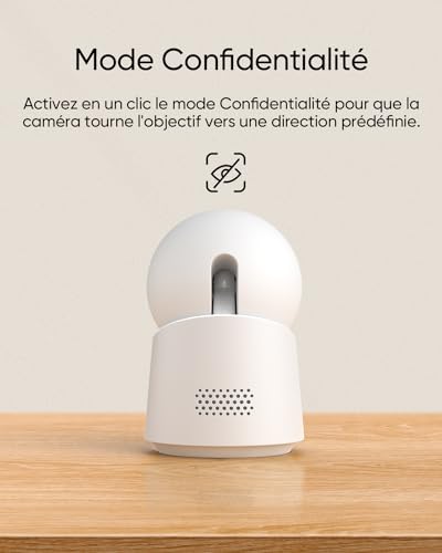 Mode Confidentialité: Activez en un clic le mode Confidentialité pour que la caméra tourne l’objectif vers une direction prédéfinie.