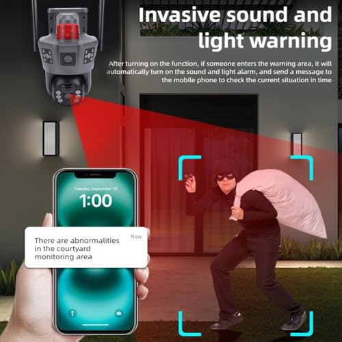 Gugxiom Caméra Solaire Outdoor Wireless, 2K Dual Lens Solar Security Camera 5G 2.4G WiFi IP66 Sécurité Cameras Wireless Outdoor avec Détection de Mouvement PTZ à 360 ° et Talk à 2