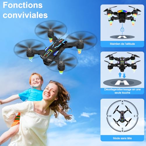 【En savoir plus sur les fonctionnalités】Le drone est très convivial et offre un décollage/atterrissage à une touche, un positionnement du flux optique, un suivi intelligent, un mode sans tête, un selfie gestuel, un vol de trajectoire et d’autres fonctions pour s’adapter à différents niveaux d’expérience. Convient aux enfants et aux adultes, aux débutants. Le drone est équipé d’un système d’évitement automatique des obstacles pour éviter les risques de collision.