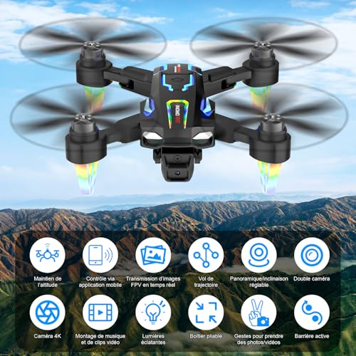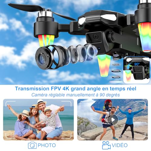 Drone avec 2 Caméra Réglage électrique Caméra, GuKKK 4K Mini Drone Caméra Pliable Active d’évitement d’obstacles, Drone Quadricoptère FPV WiFi Télécommandé, avec 2 Batteries, pour Débutants