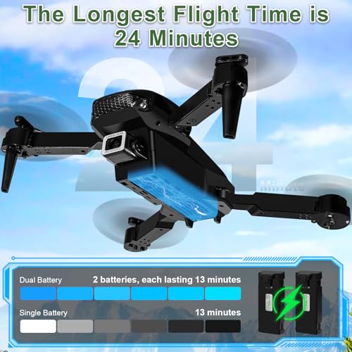 【Mise à niveau à double batterie】: Plus de temps de vol, plus de mobilité – Avec deux batteries améliorées, ce drone offre un temps de vol allant jusqu’à 28 minutes. Grâce à la technologie USB, elle se charge rapidement et son design pliable ainsi que sa boîte de stockage les rendent extrêmement portables. Avec la protection contre la charge et la fermeture courte, ce drone pour enfants est sûr et fiable.