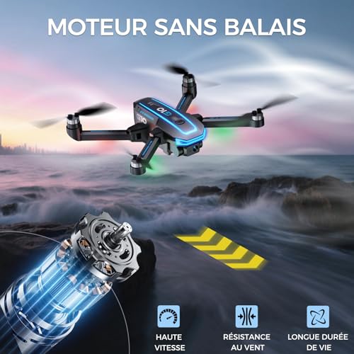 【Performances de vol】 Moteur sans balai assurant haute vitesse, durabilité et stabilité anti-vent, performant même dans des conditions exigeantes.