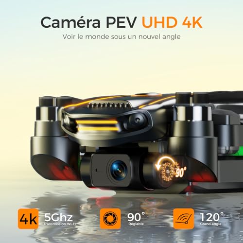【Caméra 4K et transmission en temps réel】Ce drone est équipé d’une caméra réglable électriquement à 90° et d’un objectif grand angle à 120°, ce qui permet de régler sans effort l’angle de la caméra pour améliorer les perspectives et capturer des paysages plus larges.