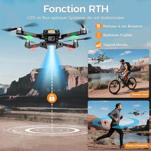 【Drone adapté aux débutants】 Les drones avec caméra pour adultes 4K prennent en charge les fonctions de batterie faible, de signal faible et de retour à une touche, ce qui leur permet de revenir rapidement et de manière fiable au point de décollage. Les fonctions « follow me », « waypoint flight », « point of interest », « auto takeoff/landing », « altitude hold », « follow-me » et « headless » permettent aux utilisateurs de définir facilement la trajectoire de vol et la direction de prise de vue du drone.