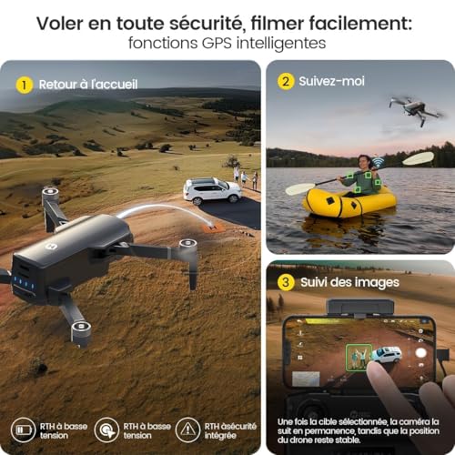Fonction GPS puissante : Le HS360S dispose d’un positionnement GPS précis, permettant non seulement un vol stable mais aussi un retour à la maison en toute sécurité. Ce drone GPS peut exécuter la fonction de retour à la maison pour retrouver son chemin vers vous lorsque la batterie est faible ou que la connexion est interrompue. Laissez ce drone 4K voler librement et ramenez-le facilement quand vous le souhaitez.