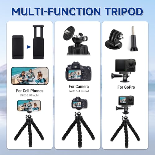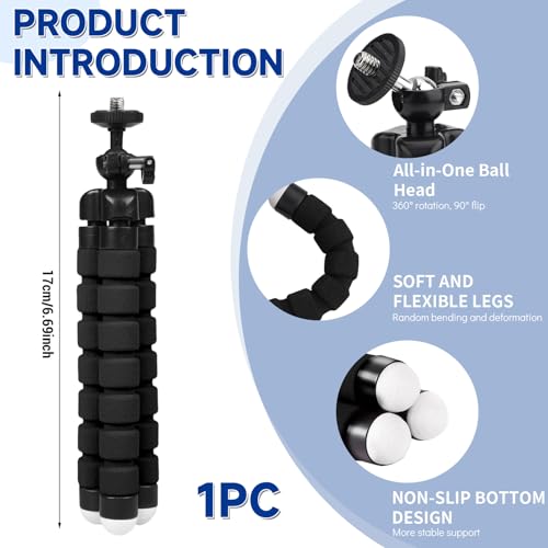 【Ce que Vous Obtiendrez】1 x mini trépied smartphone flexible, 1 x support de téléphone, 1 x adaptateur gopro, le produit lui-même est livré avec des vis 1/4 de pouce et est compatible avec les caméras. Mini trépied pour téléphone portable pour iPhone/Android/GoPro/Caméra