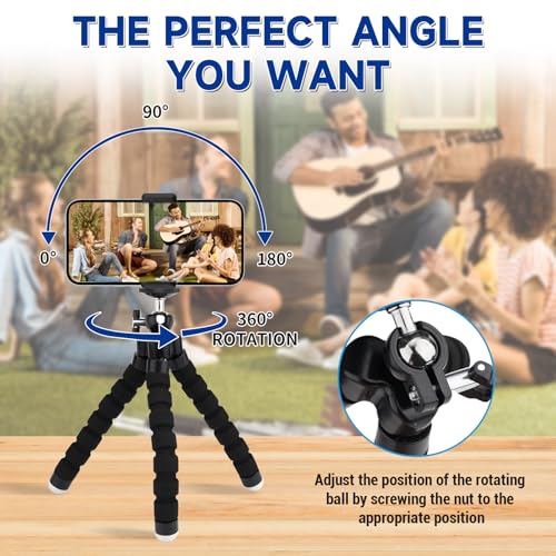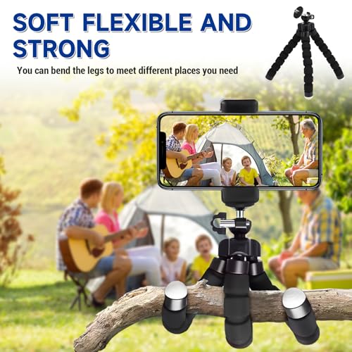 【Trépied Flexible】Ce trépied téléphone est conçu avec des pieds de pieuvre flexibles, vous pouvez les plier librement à n’importe quel angle, de sorte que vous pouvez facilement enrouler les pieds autour des clôtures, des arbres, des vélos et d’autres objets. La rotule rotative à 360 ° peut non seulement ajuster facilement l’angle de prise de vue, mais aussi le maintenir stable pendant le mouvement pour s’assurer que l’objectif ne tremble pas!