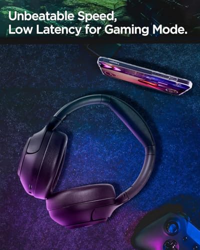 Spigen SA-HP P10 Casque Supra-auriculaire, ANC Pro 43dB, Réduction Antibruit, 4 Modes, 60h autonomie, EQ, 5 micros, Mode Jeu, Diaphragme 40mm – Noir – Noir