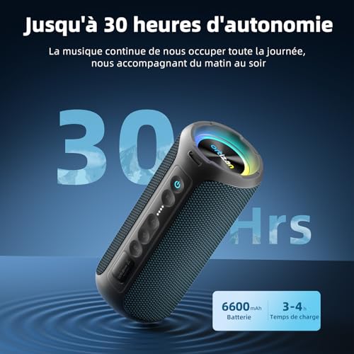 【Bluetooth 5.3】 Le haut-parleur Bluetooth Ortizan X30 utilise la technologie Bluetooth 5.3 pour des connexions stables et rapides avec des appareils compatibles. Se connecte sans fil à votre smartphone, tablette ou autres appareils Bluetooth.
