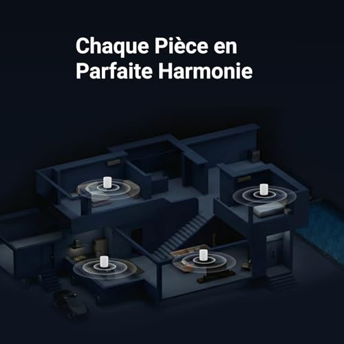 Plus Intelligent dans Toute Pièce – La technologie AI RoomFit optimise le son pour votre espace et placement : basses équilibrées, voix claires et détails captivants, où que vous le placiez.