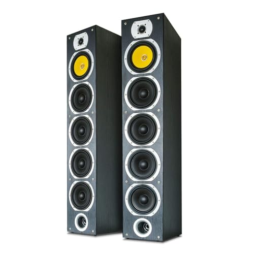 Fenton SHFT57B Paire Enceintes Colonnes Passives HiFi 4 Voies, 600W, Bass Reflex, SPL 88 DB, Subwoofer 6,5″, Son Haute-fidélité, Enceinte HiFi et Home Cinema, Idéal pour Musique et Film