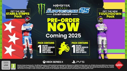 GENIESSE DIE OFFIZIELLE SUPERCROSS-SAISON 2025 – Verschaffe dir einen Vorsprung vor der Konkurrenz mit der Aufnahme der kommenden Supercross-Saison 2025! Fahre auf neu gestalteten Strecken, die reale Rennen widerspiegeln, und trete gegen die neuesten Profifahrer an. Monster Energy Supercross 25 bietet ein authentisches Erlebnis, das die Spannung und Energie der einzigartigen Events des Sports einfängt. Verpasse die Action nicht. Beweise, dass Du der Beste auf der Strecke bist!