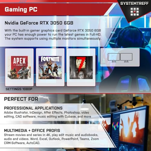 SYSTEMTREFF PC Gamer Basique AMD Ryzen 5 4500 6×4.1GHz | Nvidia RTX 3050 6GB | 512Go M.2 NVMe | 16Go DDR4 RAM | Windows 11 | Ordinateur de Bureau WLAN pour Les Joueurs, Les Gamers