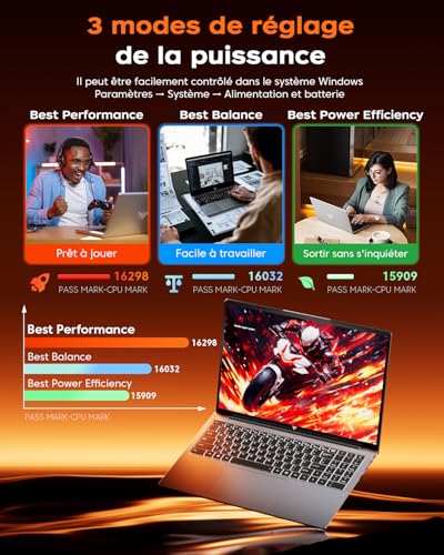 【Trois modes d’alimentation personnalisables】 En mode Performance maximale, il libère le traitement à plein régime pour les jeux et les tâches lourdes. Le mode Équilibré est parfait pour le travail quotidien comme la navigation sur le Web et l’édition de documents, offrant un mélange de vitesse et d’autonomie de la batterie. En déplacement, le mode Meilleure efficacité énergétique maximise l’endurance de la batterie sans sacrifier les fonctions de base. Améliorez votre expérience d’ordinateur portable dès aujourd’hui !