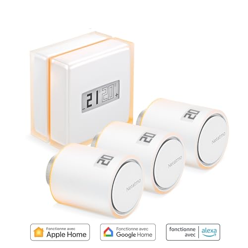 Netatmo Pack Thermostat Intelligent + 3 Têtes Thermostatique Connectées et Intelligentes, WiFi, Contrôle à Distance Via Application, Compatible avec Chauffage Individuel, NBU-NTH-NAV-EU