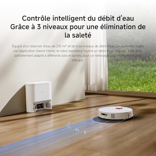 【🎯 Robot Aspirateur Laveur & Contrôle Intelligent du Débit】 Ce robot aspirateur laveur Xiaomi règle automatiquement les 3 niveaux de débit via l’application. Son réservoir de 210 ml et sa station de charge assurent une autonomie parfaite pour tous types de sols.