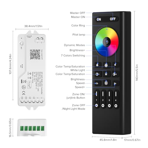 BTF-LIGHTING Contrôleur LED 2.4G WiFi SPI RGB DR03W et Télécommande RF RC03RFB Kit Supporte Contrôle APP Tuya/Smart Life Contrôle Vocal Tiers pour WS2811 WS2812B WS2813 WS2815 etc. Bandes LED RGB