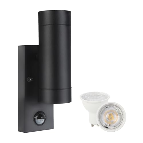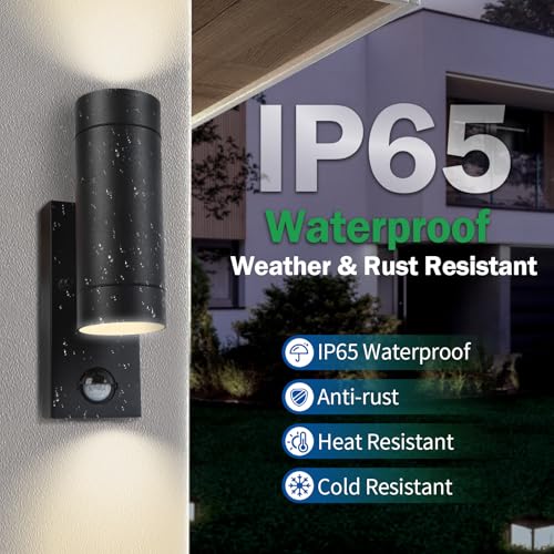 JANDT Lighting Luminaire mural extérieur en aluminium noir étanche avec détecteur de mouvement PIR – Éclairage façade, applique murale