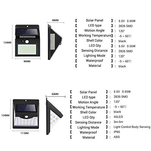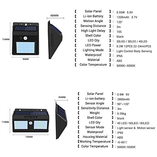 JiuRui LED Lampe Lumières de porche à LED 20 40 80 100 LEDs Lumière solaire Lampe d’extérieur Lampe d’extérieur PIR Capteur de mouvement IP65 for la clôture de jardin Smart Security Lighting