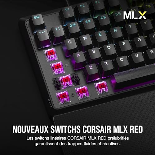 Incroyable expérience de clavier mécanique : Les switchs mécaniques linéaires CORSAIR Red prélubrifiés garantissent des frappes fluides et réactives et sont améliorés par deux couches d’insonorisation pour un gaming et une frappe très satisfaisante.