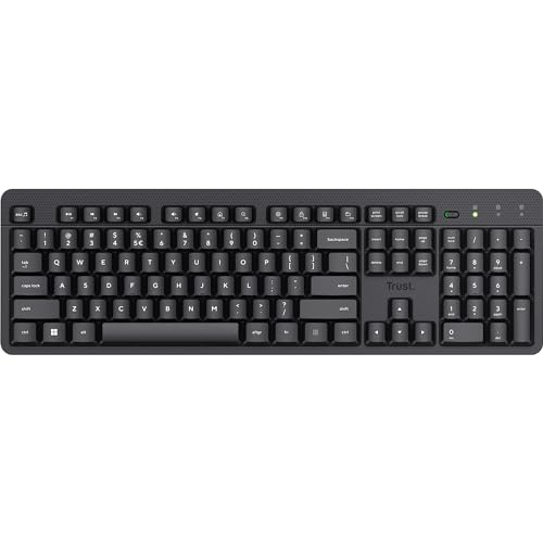 Trust ODY II Clavier sans Fil Silencieux QWERTY US Disposition, Touches Flottantes à Profil Bas, Anti-déversement, Micro Récepteur USB 2,4 GHz, Clavier sans Fil Plein Taille pour PC, Ordinateur