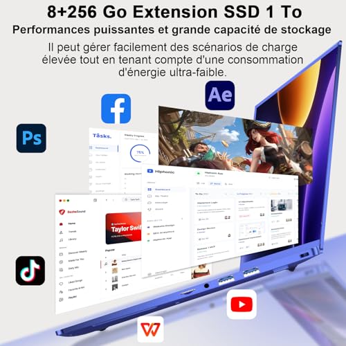 Grand Stockage et Port de Connexion Multifonction: Ordinateurs portable 8 Go de RAM et 256 Go de SSD peuvent être étendus à 1 To, et il dispose de 3 interfaces USB 3.0 Type-A, d’une interface de transmission de données Type-C, d’un port casque, d’un port de chargeur, d’un emplacement Micro-SD, d’un adaptateur et d’une clé de verrouillage, ce qui est pratique pour lire et transférer des fichiers, pc portable et est également équipé du 5G WiFi BT 4.2. La conception du port de connexion multifonction peut être étendue à plusieurs appareils, vous permettant d’obtenir une transmission sans fil et un réseau fluide n’importe où, comme dans les cafés, les bibliothèques et même en voyage.