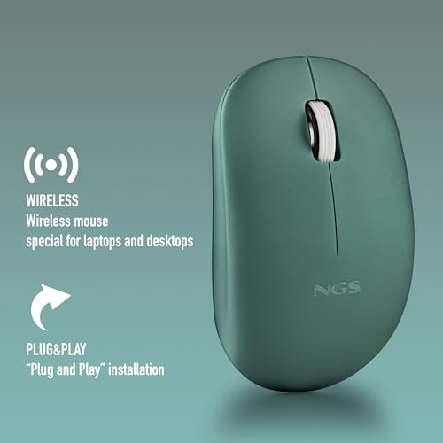 NGS Fog Pro Green – Souris sans Fil, Souris Optique 1000 DPI, Interface Nano USB, Boutons Silencieux, 2 Boutons et Molette de défilement, Plug and Play, Ambidextre, Couleur Verte