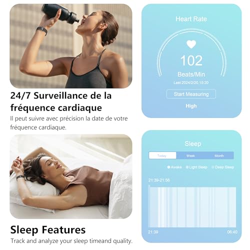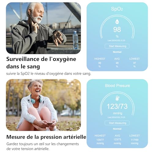 Suite complète de surveillance de la santé:Obtenez des informations plus précises sur votre bien-être grâce aux fonctionnalités de suivi de santé intégrées, fonctionnant 24 h/24 et 7 j/7, notamment la surveillance de l’oxygène sanguin, de la fréquence cardiaque et du sommeil. Surveillez vos principaux indicateurs de bien-être pour adopter un mode de vie plus sain. (Remarque : Ce produit ne prétend pas diagnostiquer ou traiter des affections médicales telles que l’hypertension.)