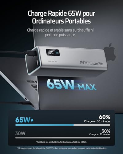 CUKTECH 15 SE 85W Totale Batterie Externe 20000mah Power Bank, 3 Ports PD 3.0 USB C 65W Batterie Externe Charge Rapide, Batterie Portable pour Ordinateur Portable/MacBook/iPad/iPhone 17/16/Samsung S24