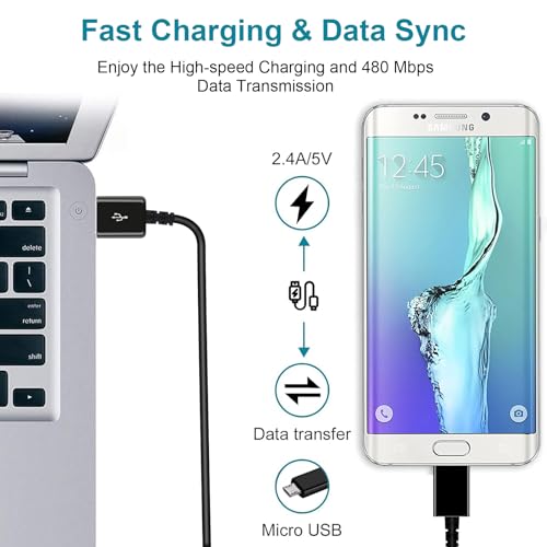 CHARGE ET TRANSFERT DE DONNEES SECURISÉS : le câble de charge micro usb de 1,5 m prend en charge la charge sécurisée à grande vitesse et le transfert rapide de données (480mbps), facilitant ainsi le transfert de fichiers volumineux entre différents appareils.