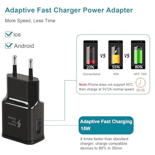 Chargeur pour Samsung Charge Rapide, USB Secteur et 1,5M Cable Micro USB Compatible avec Galaxy S7 S6 Edge S5 S4 S3 J7 J5 J3 Note 5, Huawei P Smart, Redmi Note 5 6 Pro, Wiko, Kindle, LG, HTC, PS4