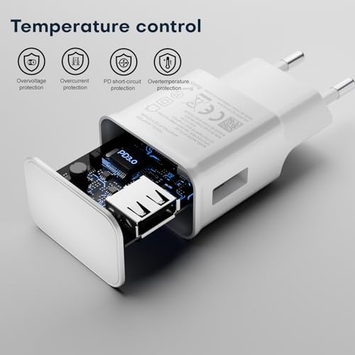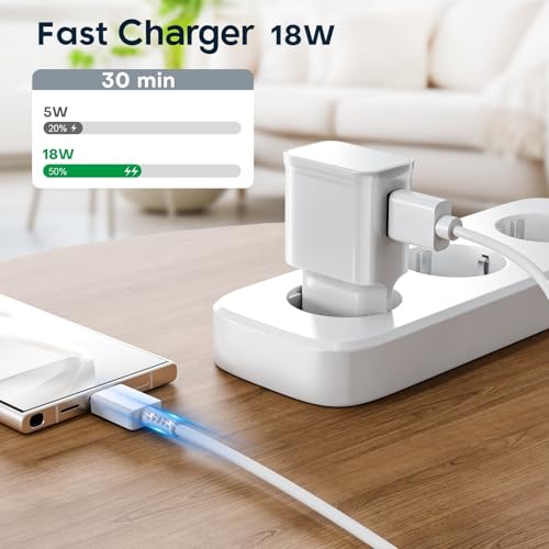 USB C Chargeur Rapide pour Samsung Galaxy A14, A13, A15, A12, 4G/5G, S10, S9, S8, A04S, A05S, A33, A23, A32, A21S, A53, S24, S23, S22, S21, S20 avec 1m Câble Type C