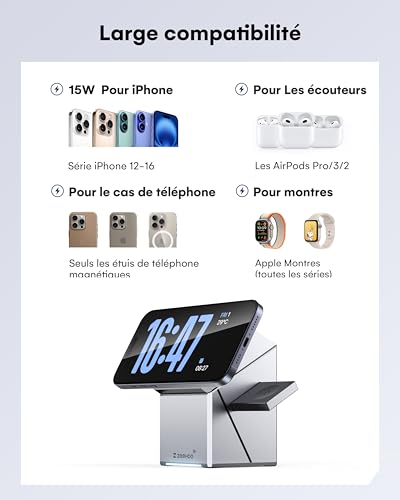 Soyez le premier à laisser votre avis sur “ZEEHOO Station de Charge 3 en 1 pour Apple, iPhone, certifié Qi2, Support de Chargeur Rotatif sans Fil pour iPhone 16, 15, 14, 13, 12, Apple Watch, AirPods (Chargeur USB-C Inclus)”