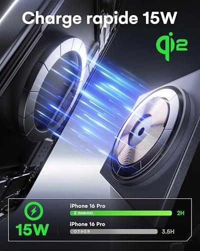 Vraie Charge Rapide De 15w + Certification Qi2 : Profitez d’une authentique charge sans fil rapide de 15W. Certifié par les normes Qi2, ce chargeur garantit des performances optimales et une large compatibilité avec tous les appareils compatibles Qi.