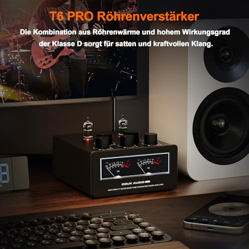 Une conception hybride mais un rendement élevé : Le T6PRO est équipé de tubes JAN5654 fonctionnant à 100 V pour une véritable amplification à tubes et offrant une expérience riche et chaleureuse. La puce d’amplification numérique haut de gamme de classe D TPA3255 permet d’obtenir une puissance de sortie maximale de 300 W par canal et d’alimenter sans effort des haut-parleurs de 4-8Ω. Sa taille compacte lui permet de s’adapter à de nombreuses applications, de la bibliothèque au home cinéma en passant par les installations de bureau.