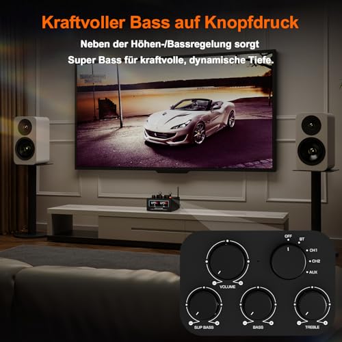 Super basses et composants de qualité audiophile : outre les réglages habituels des aigus et des basses pour personnaliser votre son préféré, un bouton de super basses allant jusqu’à 20 Hz est ajouté pour obtenir des effets de basses choquants. Le T6PRO adopte la puce Bluetooth QCC5125, les condensateurs allemands WIMA, japonais ELNA et Rubycon, les inducteurs audio professionnels et les potentiomètres de précision entièrement scellés, etc. pour offrir une clarté exceptionnelle et une faible distorsion.