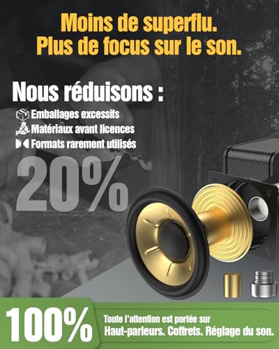 Scène sonore élargie avec 2 haut-parleurs orientés vers le haut: Deux haut-parleurs dirigés vers le plafond contribuent à élargir la scène sonore globale. Cette extension rend le son plus aéré et mieux réparti dans la pièce, améliorant la sensation d’espace sans nécessiter de réglages complexes.