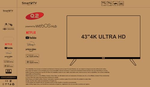Q.2 Téléviseur Intelligent 43″ 4K UHD LED – Smart TV avec webOS, HDR, Wi-FI, Bluetooth.